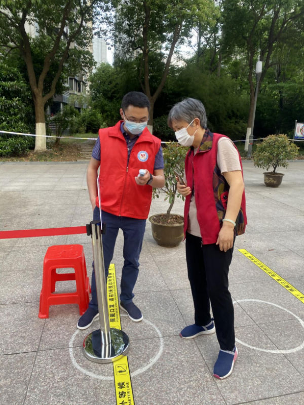 在天鵝湖畔小區(qū),葉鋒、丁守忠化身“大白”,配合核酸檢測人員進(jìn)行掃碼錄入工作,直至晚上十點(diǎn);許明仙、王宜身著紅色志愿馬甲,配合待檢人員的測溫、安康碼核驗(yàn)及秩序引導(dǎo)維護(hù)。在國際麗晶城小區(qū),汪洋、陳秋宇穿上防護(hù)服,配合開展核酸檢測登記錄入。支部發(fā)展對(duì)象鄭宇倩所在小區(qū)處于封控區(qū),得知社區(qū)需要防疫志愿者時(shí),主動(dòng)報(bào)名參加小區(qū)防疫先鋒隊(duì),協(xié)助醫(yī)護(hù)人員核酸檢測。一天下來,汗透的衣服和酸痛的小腿,讓大家深刻體會(huì)到疫情防控工作的辛苦,切身感受到防控成果的來之不易。