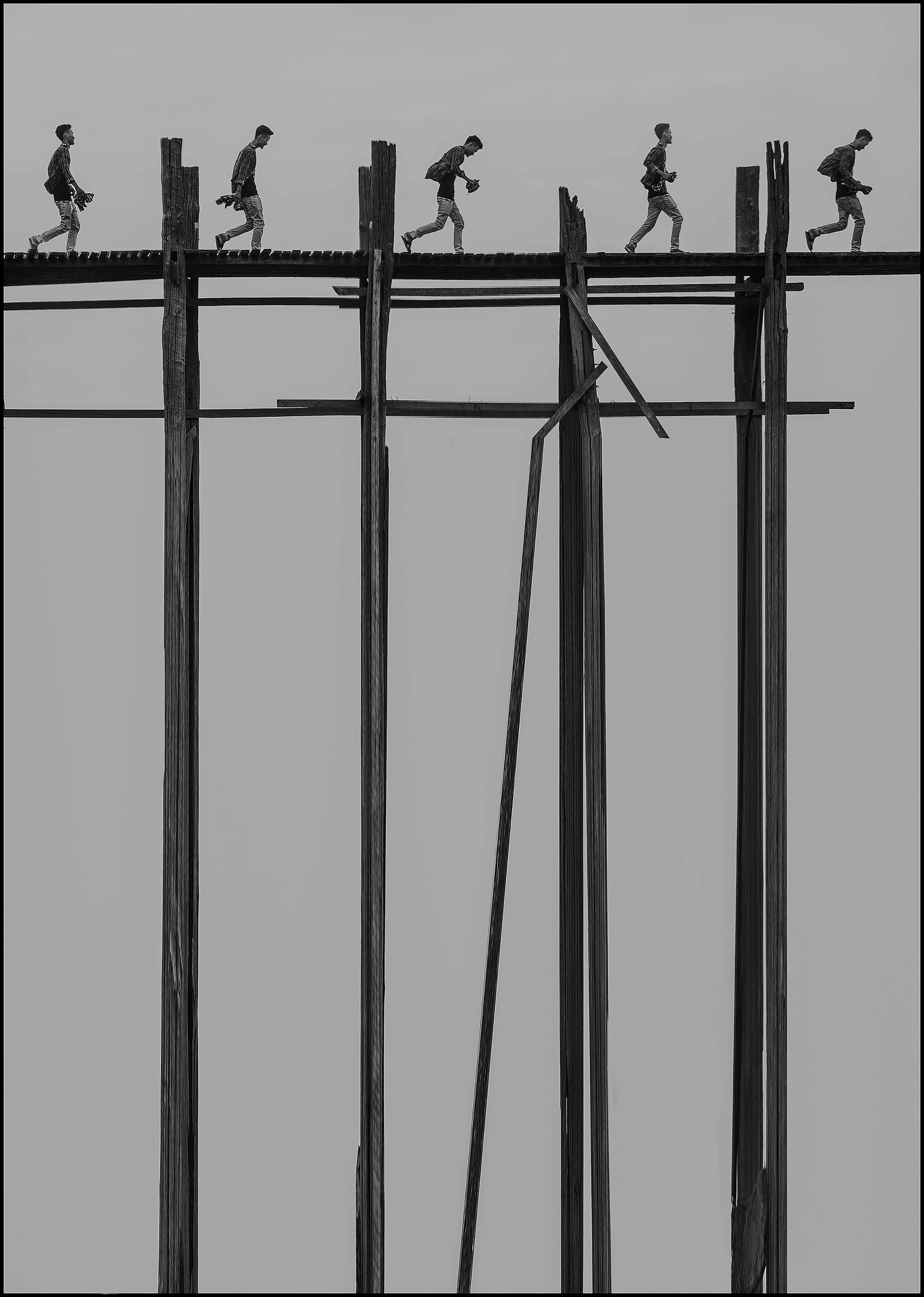 《空中少年》-技術(shù)公司-史亞利,2019年6月,攝于緬甸烏本橋。橋上自在行走的少年和水中長長的倒影,