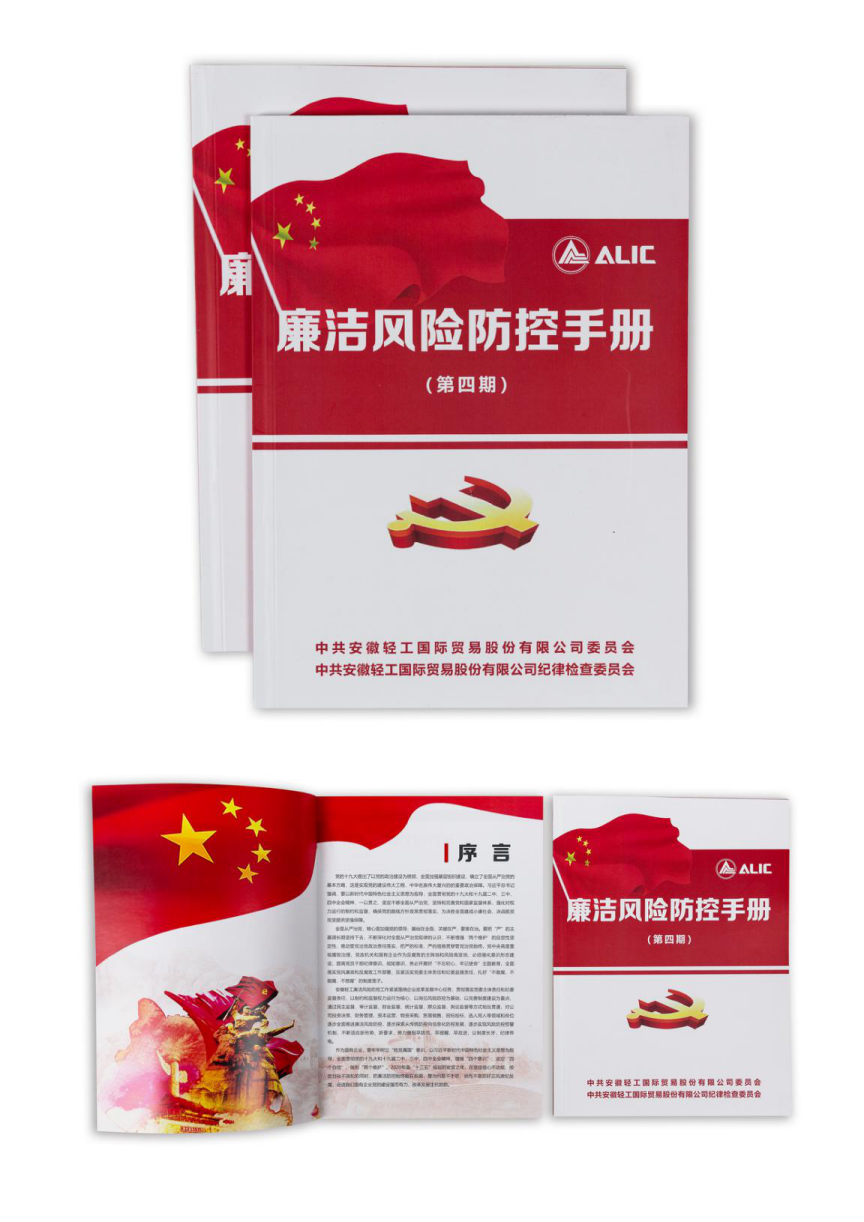 自2012年以來(lái),輕工國(guó)際紀(jì)委著手編撰具有輕工特色的《廉潔風(fēng)險(xiǎn)防控手冊(cè)》,目前已經(jīng)更新到第四版。最新的《廉潔風(fēng)險(xiǎn)防控手冊(cè)》收編了習(xí)近平總書(shū)記重要講話、中央紀(jì)委關(guān)于廉政風(fēng)險(xiǎn)防控的指導(dǎo)意見(jiàn)、省委、海螺集團(tuán)、國(guó)貿(mào)集團(tuán)領(lǐng)導(dǎo)和公司黨委書(shū)記重要講話,以及重要黨紀(jì)黨規(guī)和公司廉潔文化活動(dòng)紀(jì)實(shí),同時(shí)刊載了公司黨委和紀(jì)委組織機(jī)構(gòu)名單、黨員干部廉潔自律警言警語(yǔ)和公司廉潔文化活動(dòng)剪影等,旨在教育干部員工了解黨的工作方向、守法敬紀(jì)、遠(yuǎn)離禁區(qū),拒腐抗腐、摒棄遺風(fēng)陋俗,激發(fā)干事創(chuàng)業(yè)熱情。