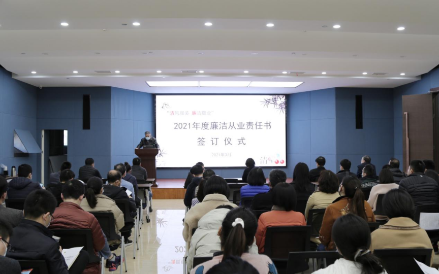 簽訂儀式上,服裝公司班子成員、各部室負責人、關鍵崗位代表及工會、團委、二級機構負責人等,現場簽訂了《2021年度廉潔從業(yè)承諾書》。此外,為強化各部室負責人的主體責任,公司黨委還與27名部室負責人簽訂了《2021年度廉潔從業(yè)責任書》。